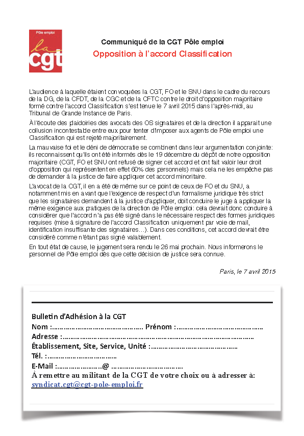 Opposition à l’accord classif 04/15 Tweeter Partager Partager Opposition à l’accord Classification Imprimer cet article Télécharger cet article 7 avril 2015