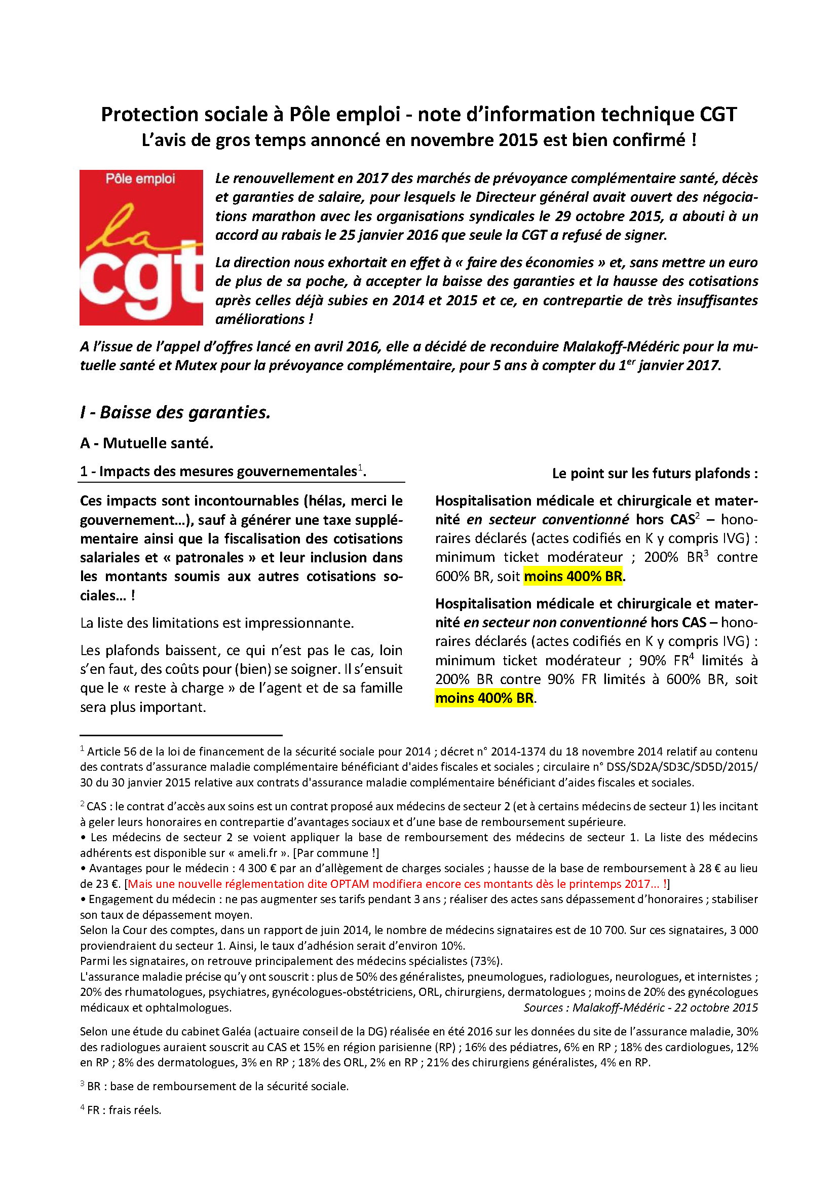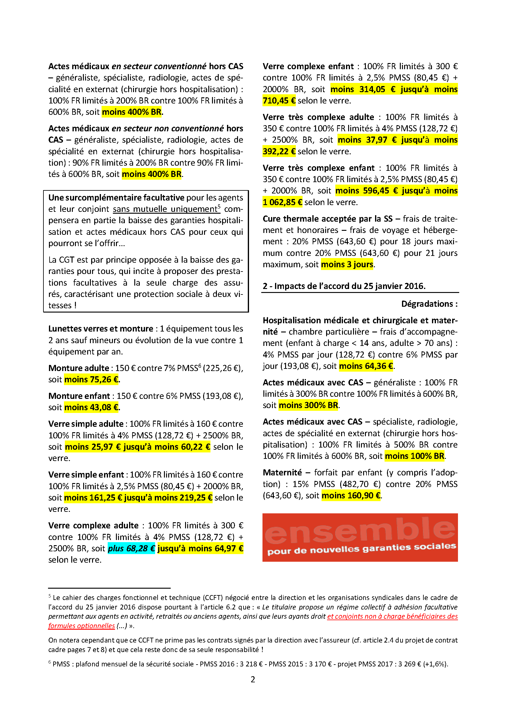 Le renouvellement en 2017 des garanties santé et prévoyance a abouti à un accord au rabais le 25 janvier 2016 que seule la CGT a refusé de signer.