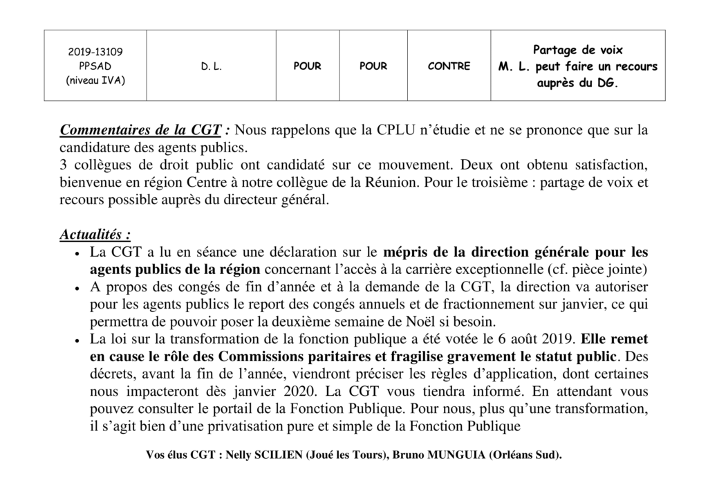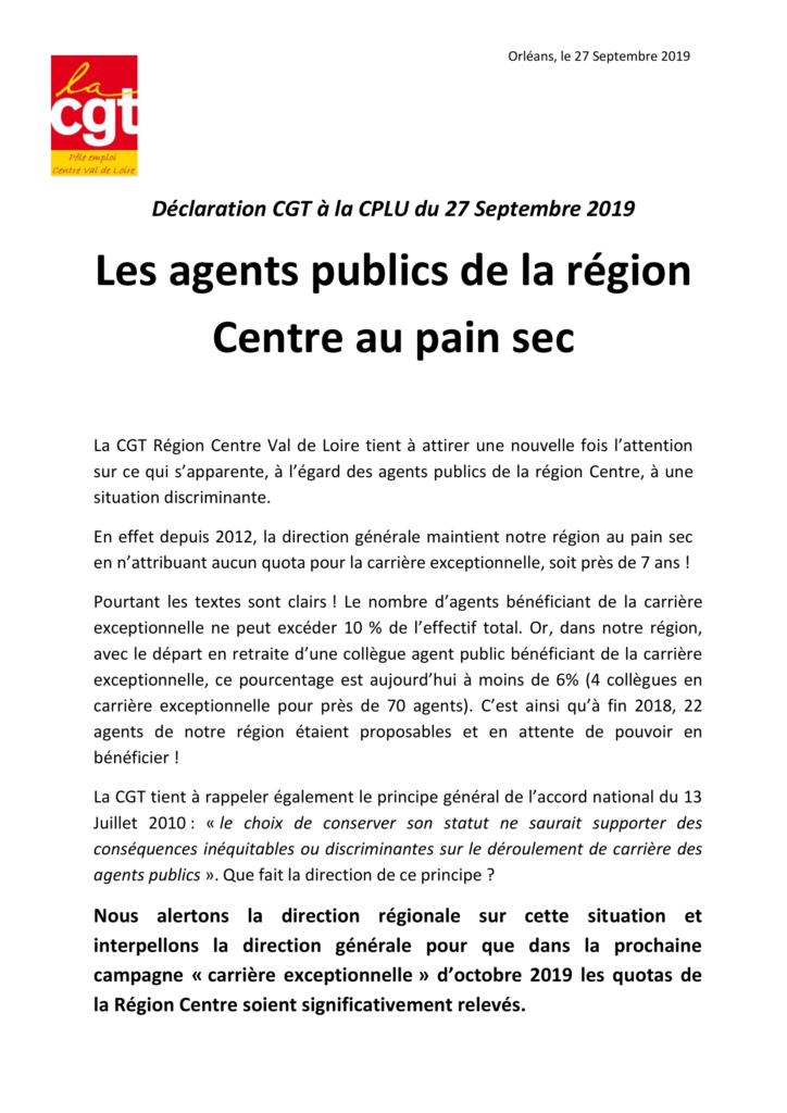 Lettre ouverte au DG sur l’absence de possibilité de carrière exceptionnelle pour les agents publics en région Centre Val de Loire.