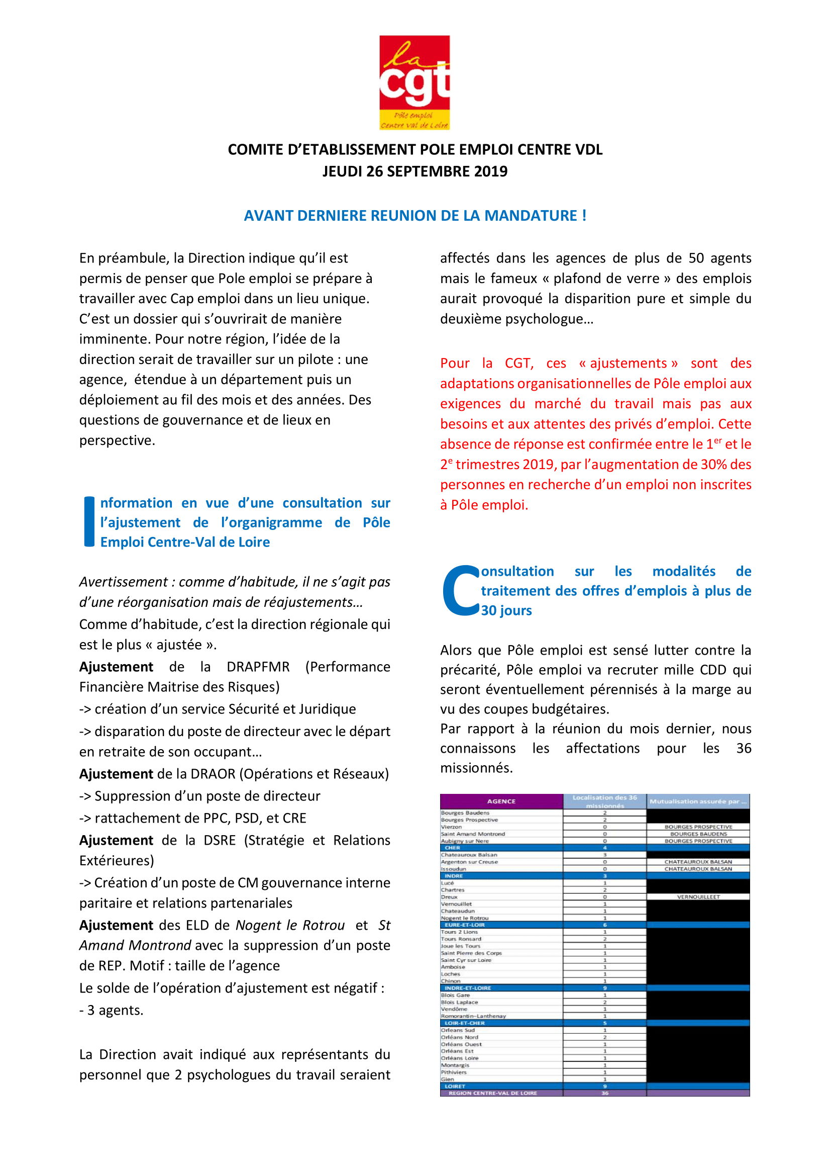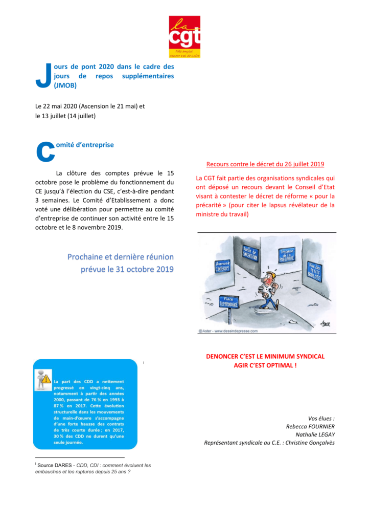 Compte rendu du Comité d’établissement du 26 septembre 2019 Tweeter Partager Partager Réorganisation, suivi des offres… compte rendu de l’avant dernier CE avant la mise en place du CSE Imprimer cet article Télécharger cet article 29 septembre 2019