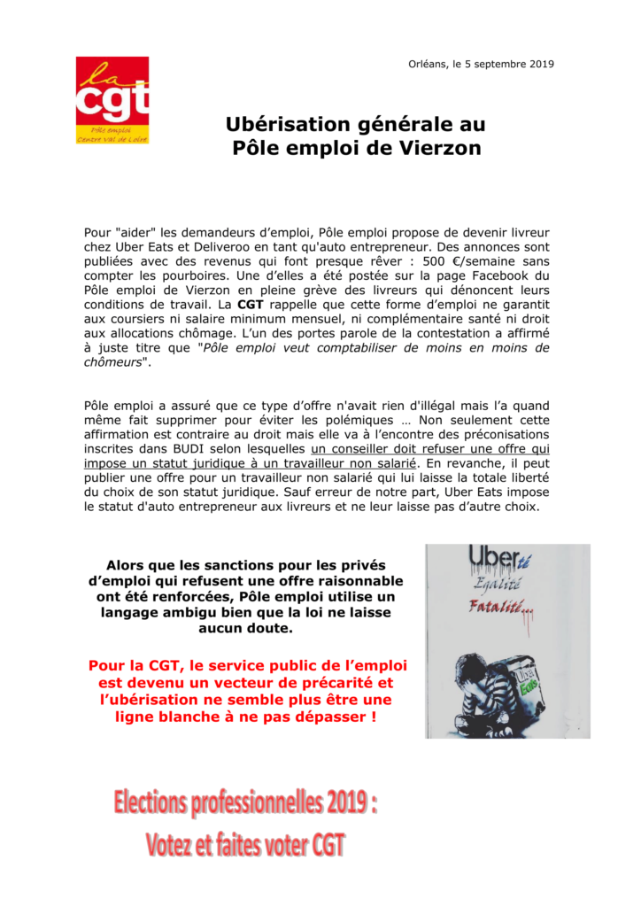 Sur la promotion à Pôle emploi de l’uberisation du travail.