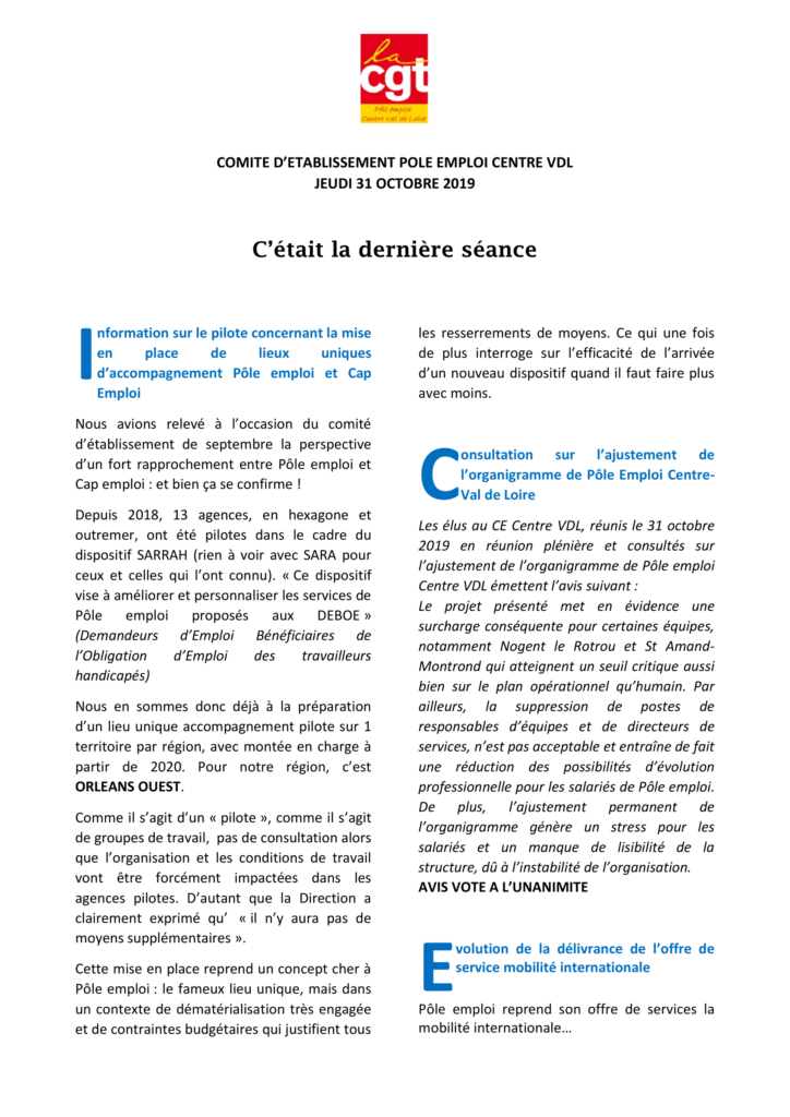 Compte rendu du CE du 31 octobre 2019 Tweeter Partager Partager C’était la dernière séance. Imprimer cet article Télécharger cet article 8 novembre 2019