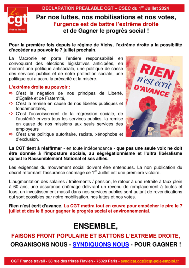 Déclaration CGT au CSEC du 1er juillet 2024