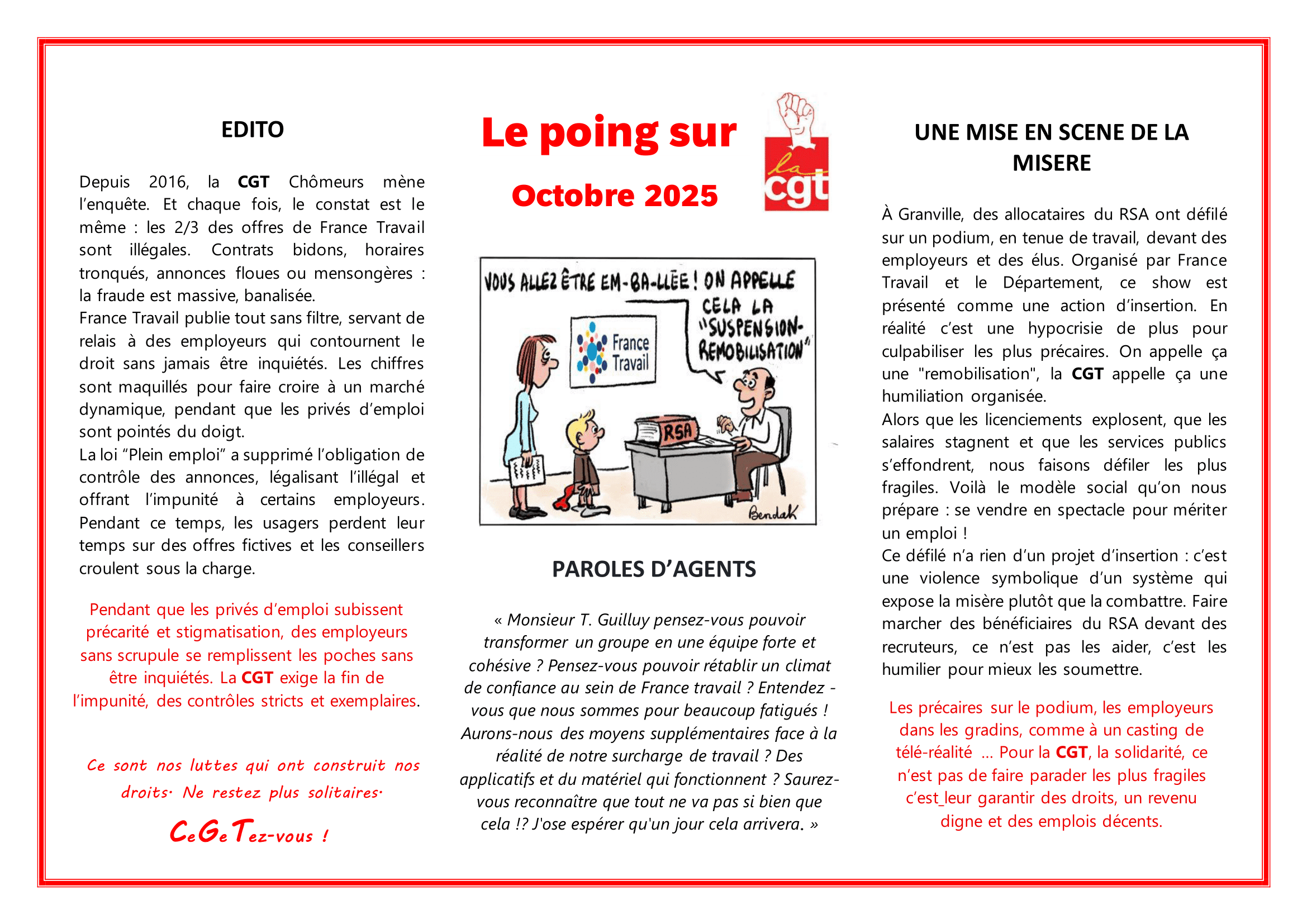 Au menu de votre Poing Sur : l’étude annuelle de la CGT sur les offres d’emploi,, la mise en scène de la misère, notre coup de gueule ….