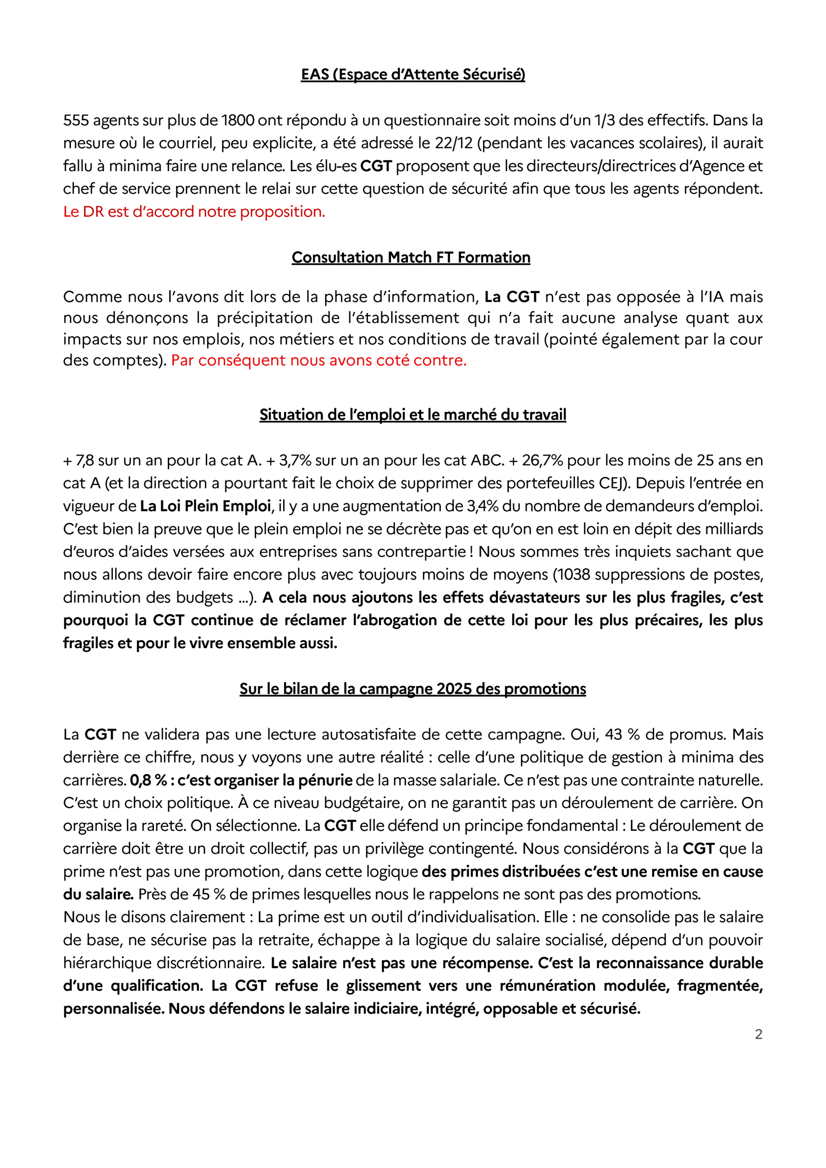 Ce CSE concernait la consultation Match FT, la situation de l’emploi, le bilan de la campagne de promotion 2025, le bilan des heures supplémentaires et des heures écrêtées… Sans oublier l’attribution d’un titre de noblesse au CRE.